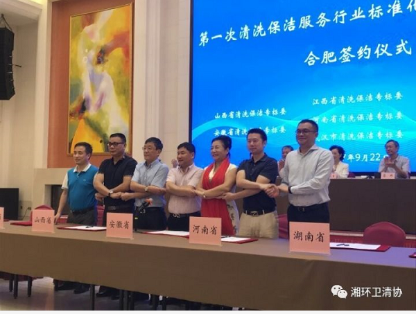 (六省一市签署《“中部地区清洗保洁服务标准化战略合作联盟”合作协议》)