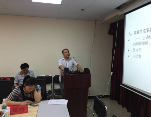 仪式后,芙蓉区劳动人事争议仲裁院院长李勇对《企业调解工作规范化建设及调解技巧》工作经验进行了培训与分享。
