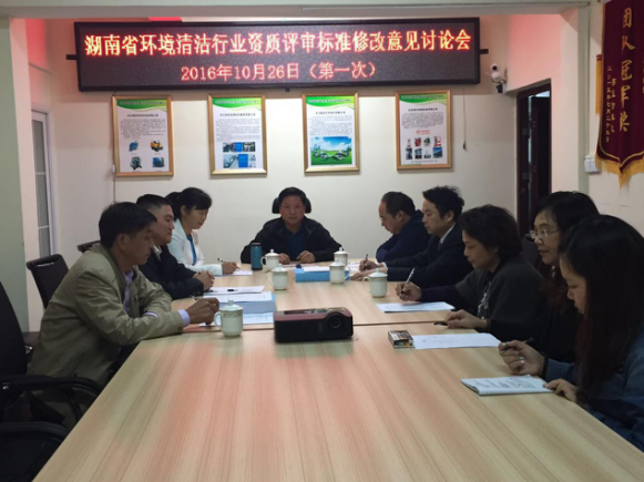 2016年10月26日下午,湖南省环境卫生清洁行业协会在协会会议室召开了第一次湖南省环境清洁行业资质评审标准修改意见讨论会。各行业专家及副会长单位对此次讨论会做出了积极的响应,会上周铁平会长对出席本次会议的专家及副会长单位表示热烈的欢迎,此次会议分别有文楚成、王艳辉、朱朝霞、廖尚峰、易帅、张冯英、李佑宏七位行业专家及副会长出席并且积极地参加了讨论。