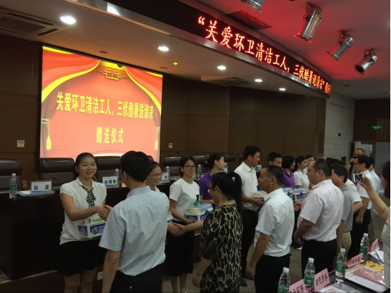 2016年7月22日上午, “关爱环卫清洁工人,三伏酷暑送清凉”赠送仪式在中南林业科技大学图书馆报告厅举行,本次活动为一线环卫清洁工人送上了价值60000余元的防暑降温用品,祝福他们工作顺利,平安健康!