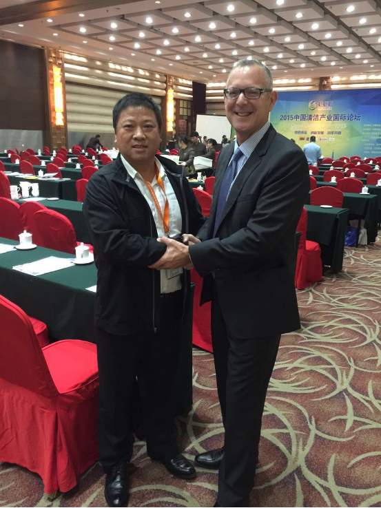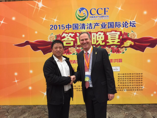 2015年11月17日至19日,“2015年中国清洁产业国际论坛”在北京稻香湖景酒店举办。此次论坛主题为“绿色清洁、创新发展、合作共赢”,共同解读中国经济新常态下清洁产业面临的机遇与挑战,探索全新的清洁服务模式和管理运营模式。本次论坛邀请了ISSA世界清洁行业协会执行会长约翰·巴雷特先生、BSCAI国际建筑服务商协会主席保罗·格林兰先生、加拿大商业清洁协会理事会主席兰迪·伯克先生、IICRC国际检查清洁修复认证协会副主席珍妮·鲍伊默女士等国际行业专家,从不同的视角介绍了国际清洁行业发展现状和未来趋势以及国际先进的清洁管理经验。湖南省清洁行业协会会长周铁平先生及秘书长田亚出席了此次会议。