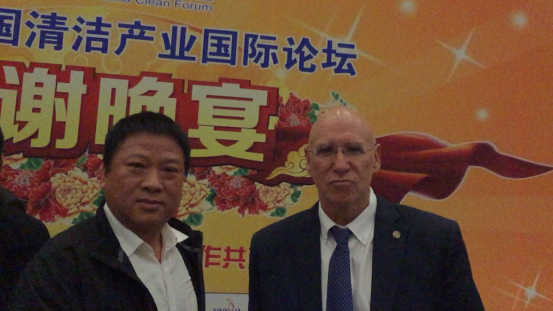 周铁平会长与ISSA美国国际清洁卫生协会执行会长约翰·巴雷特先生亲切交谈并合影
