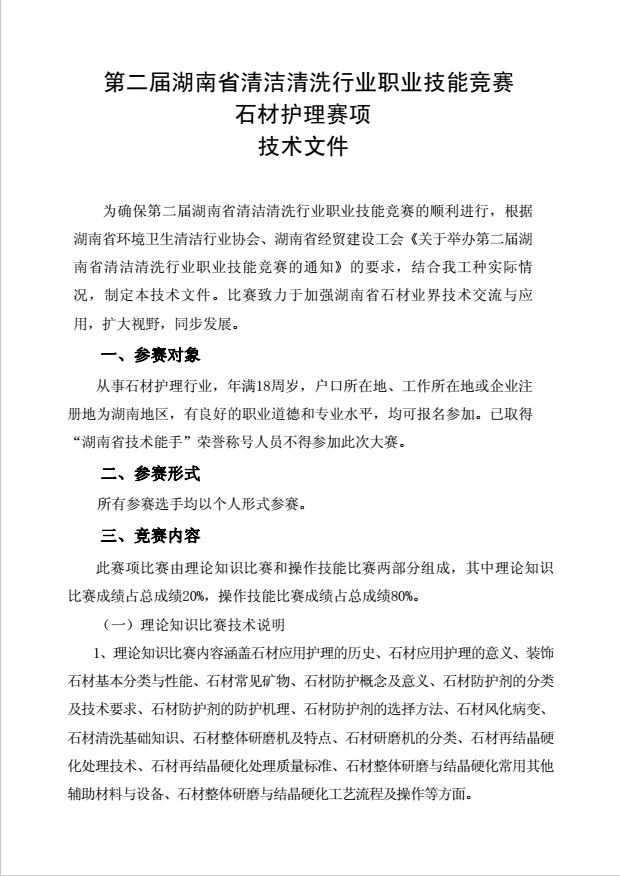 (石材护理工)第二届湖南省清洁清洗行业职业技能竞赛技术文件