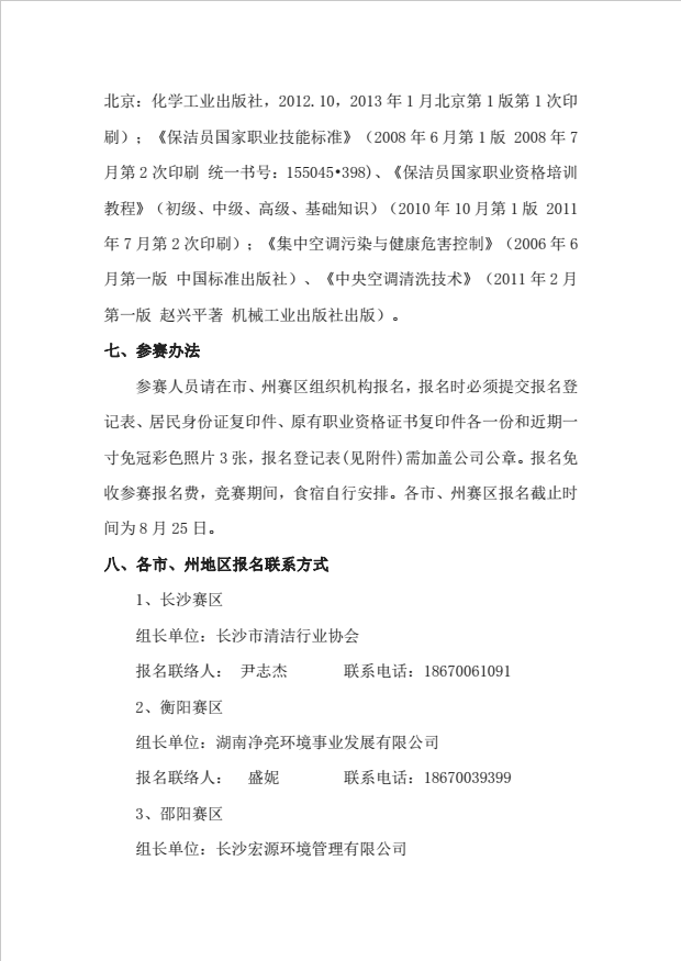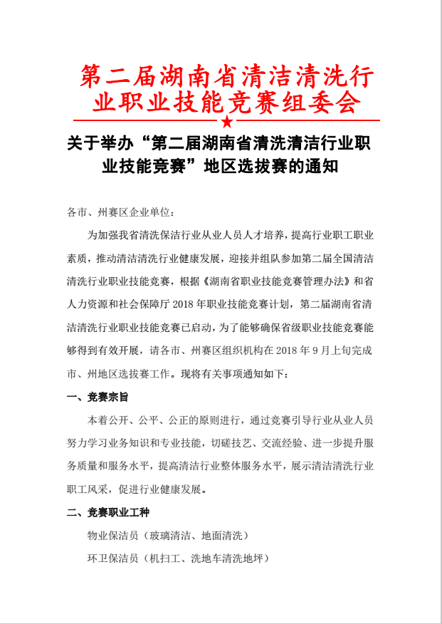 关于举办第二届湖南省清洁清洗行业职业技能竞赛地区选拔赛的通知