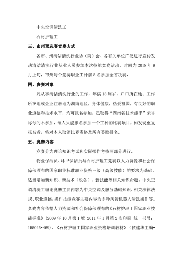 关于举办第二届湖南省清洁清洗行业职业技能竞赛的通知