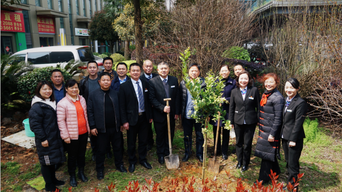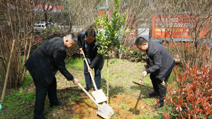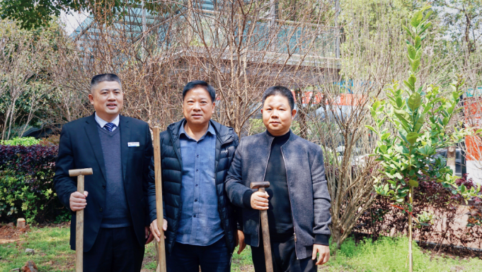 最后,由周铁平会长、罗蛟副会长、易伟刚董事长在铭诚摩根大厦绿化区种下象征友谊的香水柠檬树。