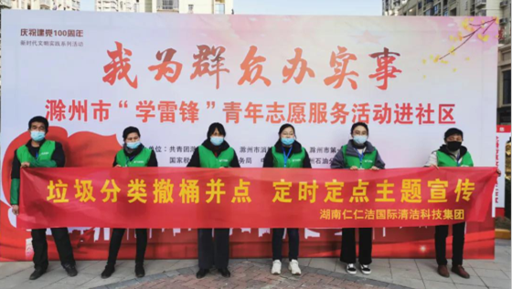 3月5日上午,湖南仁仁洁集团在安徽滁州开展“弘扬雷锋精神 争做最美志愿者”主题活动,带领辖区学生进行垃圾分类宣传,加强居民群众对垃圾分类的进一步认识,推进社区垃圾分类工作深入落实,助力共建靓丽滁州。