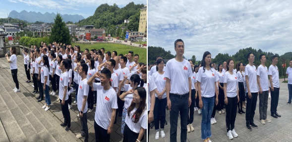 在实地教学中,兴发物业全体党员同志集体重走长征路,去到了中国工农红军第二方面军长征出发地--刘家坪,瞻仰了中国工农红军第二方面军长征出发地纪念碑。在纪念碑前,全体党员一同重温入党誓词,怀着无比崇敬的心情向革命先辈敬献花篮,表达对革命先辈的无限敬仰。