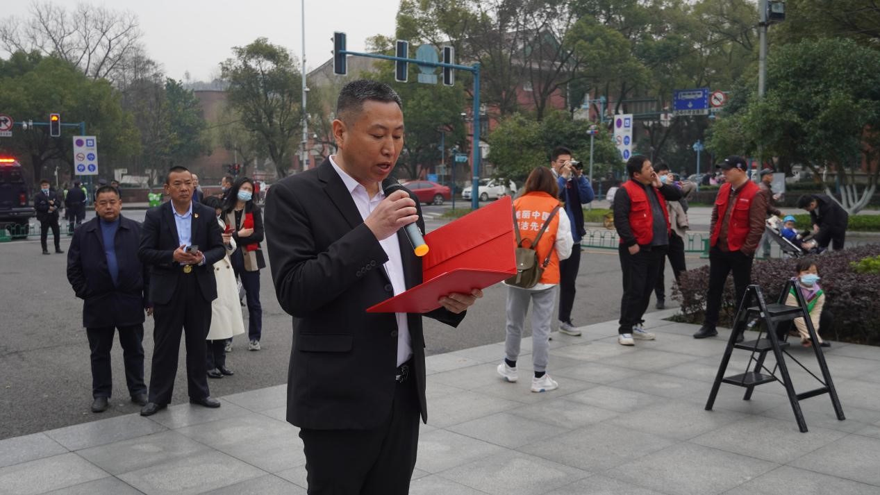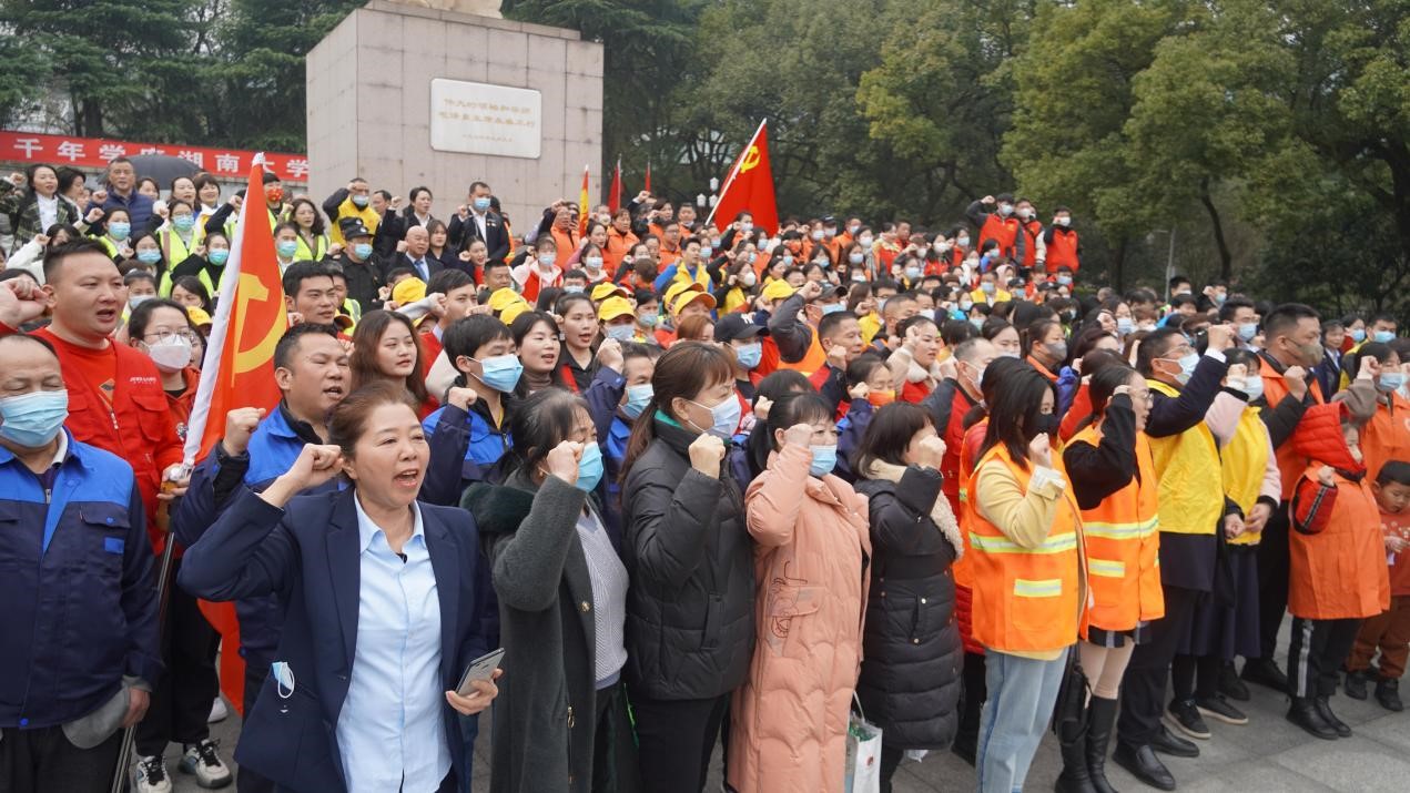 (志愿者们举起右手,斗志激昂地跟着龙总念起了誓词)