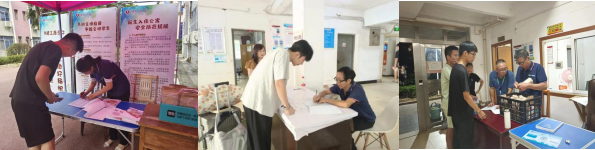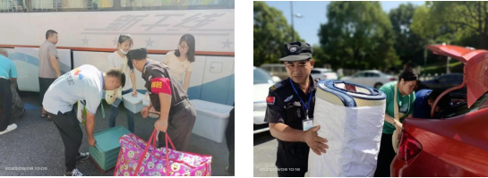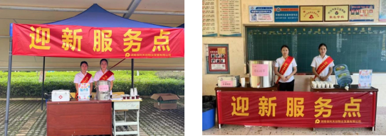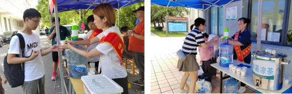 物业服务中心专设爱心服务站,为新生及家长提供信息咨询服务、答疑解惑,贴心准备解暑凉茶、饮用水和医药箱,供新生及家长临时休息补充能量。