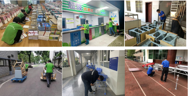项目全员提前到岗,克服一切困难,加班加点、保质保量完成了书籍分发、教室桌椅搬运、垃圾清运、开学典礼场地搭建等工作。如长郡月亮岛项目物业工作人员协助学校累计分发书籍80余万册,分拣托运180个教室和90余间办公室因调整所产生的垃圾10余吨,用汗水和行动践行全心全意为师生服务的理念。