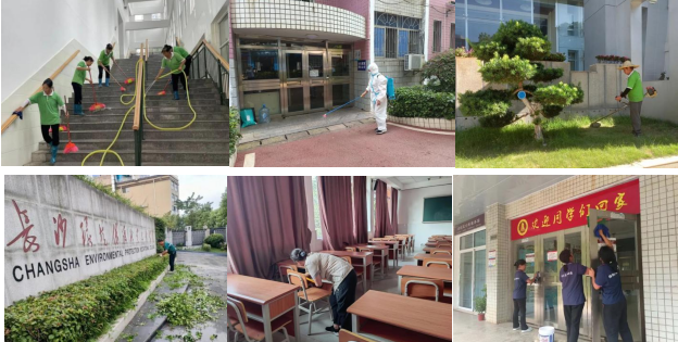 开学前,保利天创物业组织开展对校园环境的全方位整治和美化,包括绿篱修剪、树木维护、湖面垃圾清理、环境修缮等工作;做好教学楼开学前的集中保洁工作,为师生提供一个焕然一新、温馨舒适的校园环境,从细节提升校园环境品质,营造优美整洁、绿色节能、文明和谐的育人氛围。