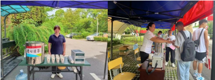 考虑到天气炎热,物业服务中心专设爱心服务站,提供凉茶与饮用水供学生及家长取用。