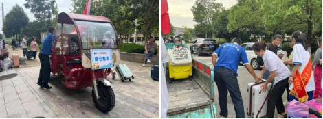 “行李太多包裹大件怎么办”?不用担心,停驻在校门的爱心专车早已就位。从清晨到傍晚,一趟趟往返,一车车行李,工作人员始终积极主动、热情周到,协助学生将行李安全运至学生宿舍楼前。