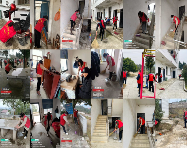 随后,大家纷纷行动起来,他们拿着扫帚、铁铲、抹布等卫生工具,撸起了袖子为老人打扫卫生、整理房间,他们三个一群,五个一伙,有的清扫大坪和楼道,有的抹扶手,有的拖地,有的刷厕所,有的清理绿化带里的垃圾……平常平静的敬老院大家忙得热火朝天。
