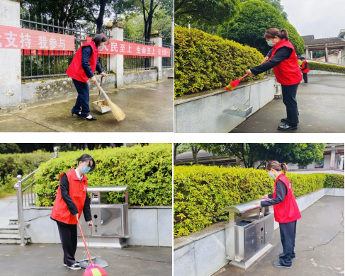 志愿者们主动拿起扫帚、抹布,打扫园区道路的落叶、擦拭垃圾桶,为养老院的老人们营造干净整洁的居住环境。