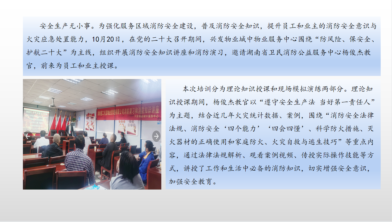 护航党的二十大,兴发物业组织开展消防安全知识讲座和消防演习