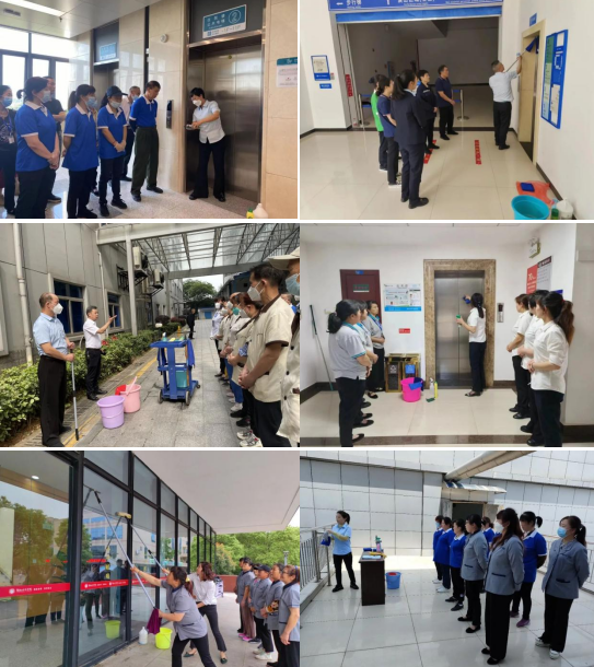为提高清洁效率和质量,开展以擦刮玻璃、药剂使用、电梯保养为主要内容的保洁技能培训,让每一位保洁人员掌握清洁方法与工作流程,达到岗位要求与标准。