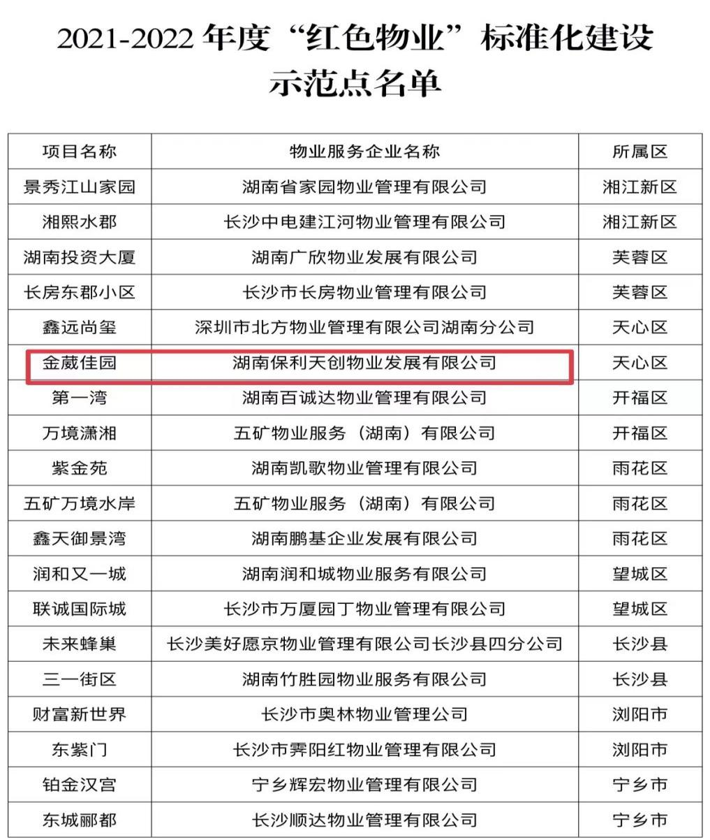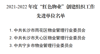 7月21日,长沙市“红色物业”创建工作推进暨市物业行业党委第二次党委会(扩大)会议召开。会议对2021—2022年度红色物业创建组织工作先进单位、“红色物业”标准化建设示范点进行了表彰,雨花区物业管理行业党委、天心区物业管理行业党委、宁乡市物业管理行业党委被评为“红色物业”创建组织工作先进单位,保利天创物业在管项目金葳佳园等19个小区被评为“红色物业”标准化建设示范点。