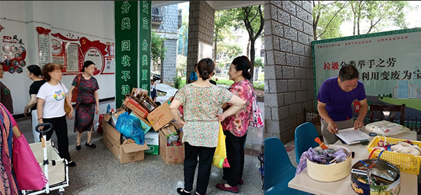 上图为:鼓励业主做好垃圾分类,变废为宝。