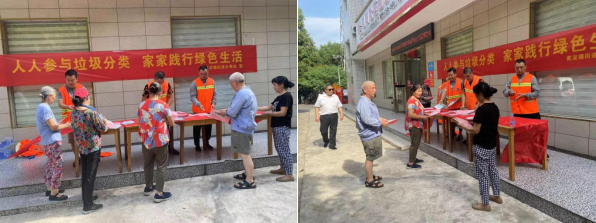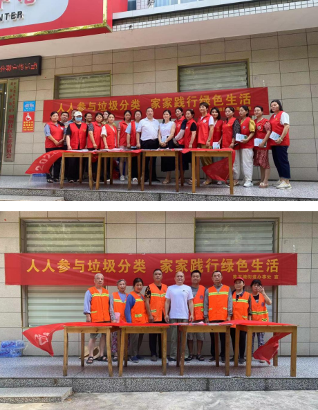 (我司喻总与黄泥塘办事处相关领导在社区做垃圾分类宣传)