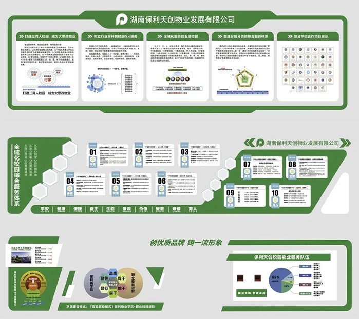 针对各级学校多样化需求,基于校园Go服务形象定位,2023年保利天创物业创新开发“10*5全域化校园综合服务体系,未来将以“中国未来教育社区综合服务商”为全国战略定位,以“中国教育治理协同创新引领者”为企业使命,以“善治善成,化育天下”为核心理念,通过建立分级分类服务标准体系,共享型的组织创新体系、军团式的人才培养体系等三大支撑战略,将保利天创教育服务打造为中国教育治理服务育人第一股,通过“未来校园联合实验室”、“讲好教育强国故事”校长论坛,校园Go公益服务系列活动的品牌化经营,将保利天创教育服务打造成为中国“环境物业、育人物业、思政物业”的教育物业领导品牌。