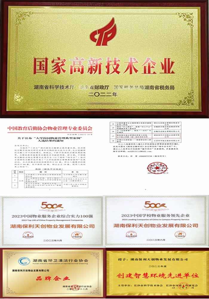 2023年,保利天创物业聚焦业主和客户需求,不断创新和优化品质服务力,迭代升级服务模式,凭借完善的服务体系和管理能力、领先的科技创新实力,获得专业机构和行业的多方认可,顺利通过国家高新技术企业认定,荣获中国物业服务企业综合实力百强、中国学校物业服务领先企业等殊荣,《高校绿色物业管理的探索与实践—以中南大学新(南)校区项目为例》案例成功入选中国教育后勤协会“大学校园物业管理典型案例”名单。