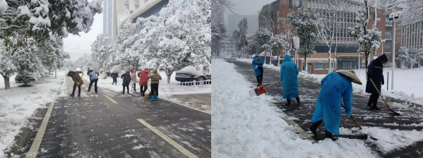 株洲分公司党支部迅速响应,立即启动应急预案,集结党支部党员、团支部团员和分公司志愿者开展铲雪行动。大家手持雪铲、扫帚,不畏严寒,为车辆和人员出行消除安全隐患,受到了一致好评和点赞。