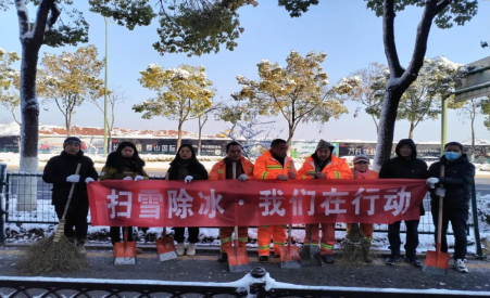公司住宅、商办、城市环卫、公建4个事业部党支部坚持“一个支部就是一个堡垒,一名党员就是一面旗帜”。以支部党员和团员为主力军,组成志愿服务队积极投身到清冰除雪工作中,让党旗在战冰雪、保平安一线高高飘扬。
