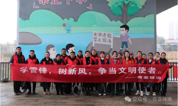 3月4日,奇亚环境组织40多名志愿者来到秋蒲大桥开展“学雷锋,树新风,争当文明使者”活动。奇亚环境组织志愿者们对河道周边的垃圾进行清理,他们手持夹子,拿着垃圾袋,分工合作,互相配合,将河岸周边的白色垃圾、饮料瓶罐垃圾捡起并存放到垃圾袋内,统一放到垃圾收集车上。